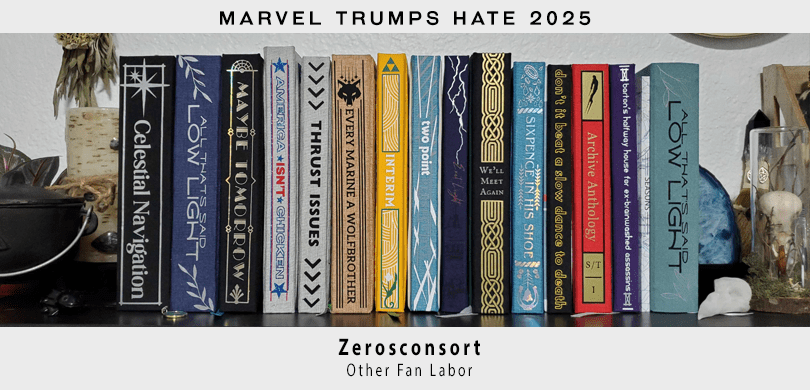 I am offering a handbound fanfic (stand alone, series, or author anthology) of your choice up to 90k words. An author anthology is a collection of fics written by a single author compiled together into one bind. This will be a hardcover bind with custom created cover art, chapter headers, and potential in-chapter embellishments - with the typeset and cover complexity depending on the final bid amount.